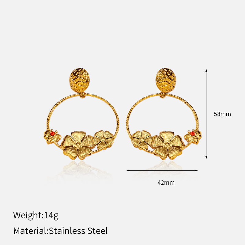 As a professional stainless steel jewelry factory, Lonceen ensures each stainless steel hoop earring meets strict quality standards. The gold stainless steel floral hoop earrings are resistant to tarnish and ideal for daily wear.