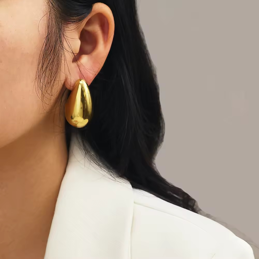 Gold drop-shaped 18k gold-plated fashion jewelry earrings with a non-oxidizable gold design