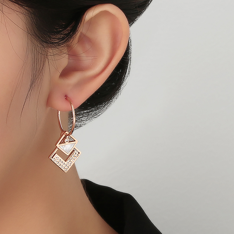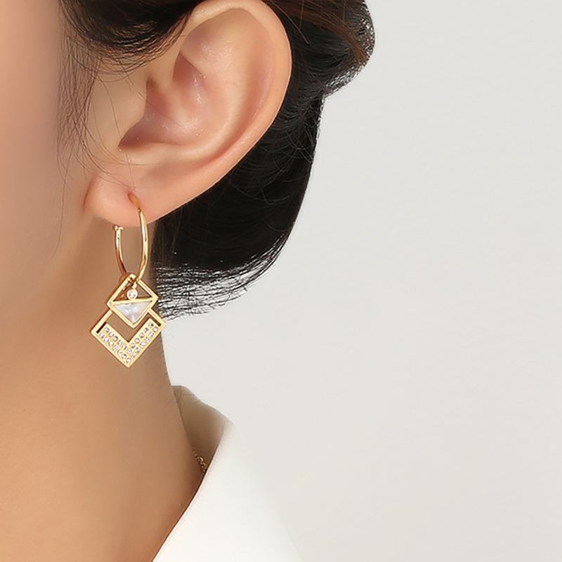 As a hot - selling product, these stainless steel gold square natural shell rhinestone earrings have strong market appeal due to their elegant and stylish design, high - quality materials, and excellent craftsmanship. They support bulk wholesale, with competitive pricing and stable supply capacity, suitable for jewelry stores, e - commerce platforms, boutiques, and other channels to expand product lines. The combination of unique design, high - quality materials, and wide adaptability makes them widely loved by consumers, helping wholesale customers quickly occupy the fashion jewelry market and increase sales performance.