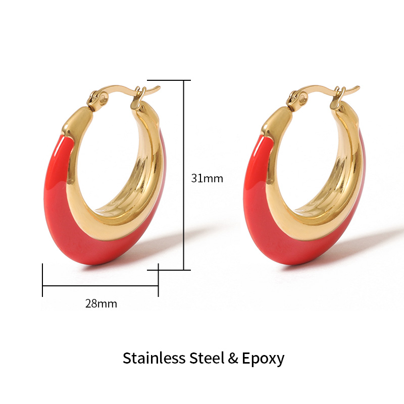 These stainless steel earrings feature a smooth China red enamel coating combined with polished metal finish. The classic hoop structure creates a bold and elegant look, making these stainless steel China red hoop earrings ideal for fashion collections and festive occasions.