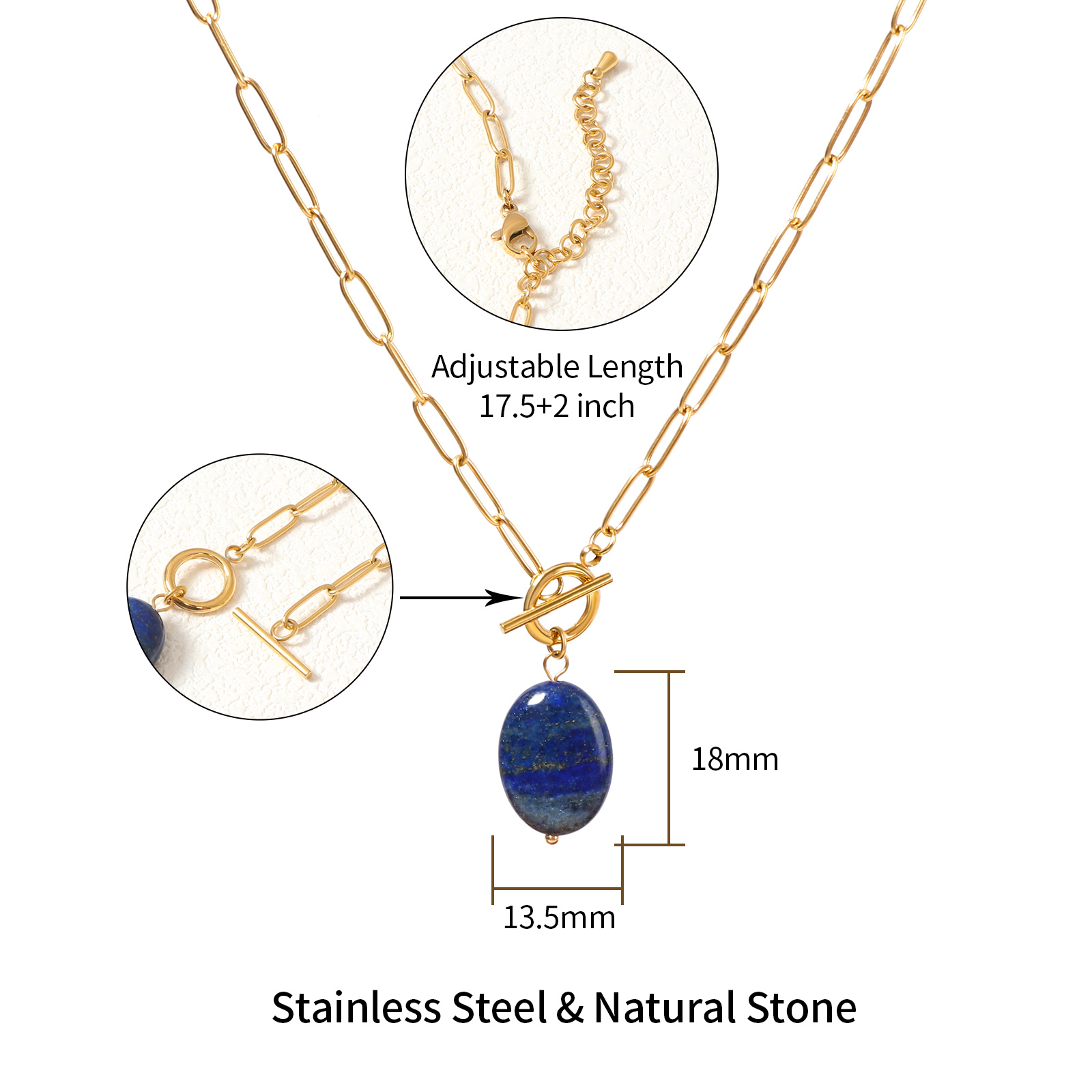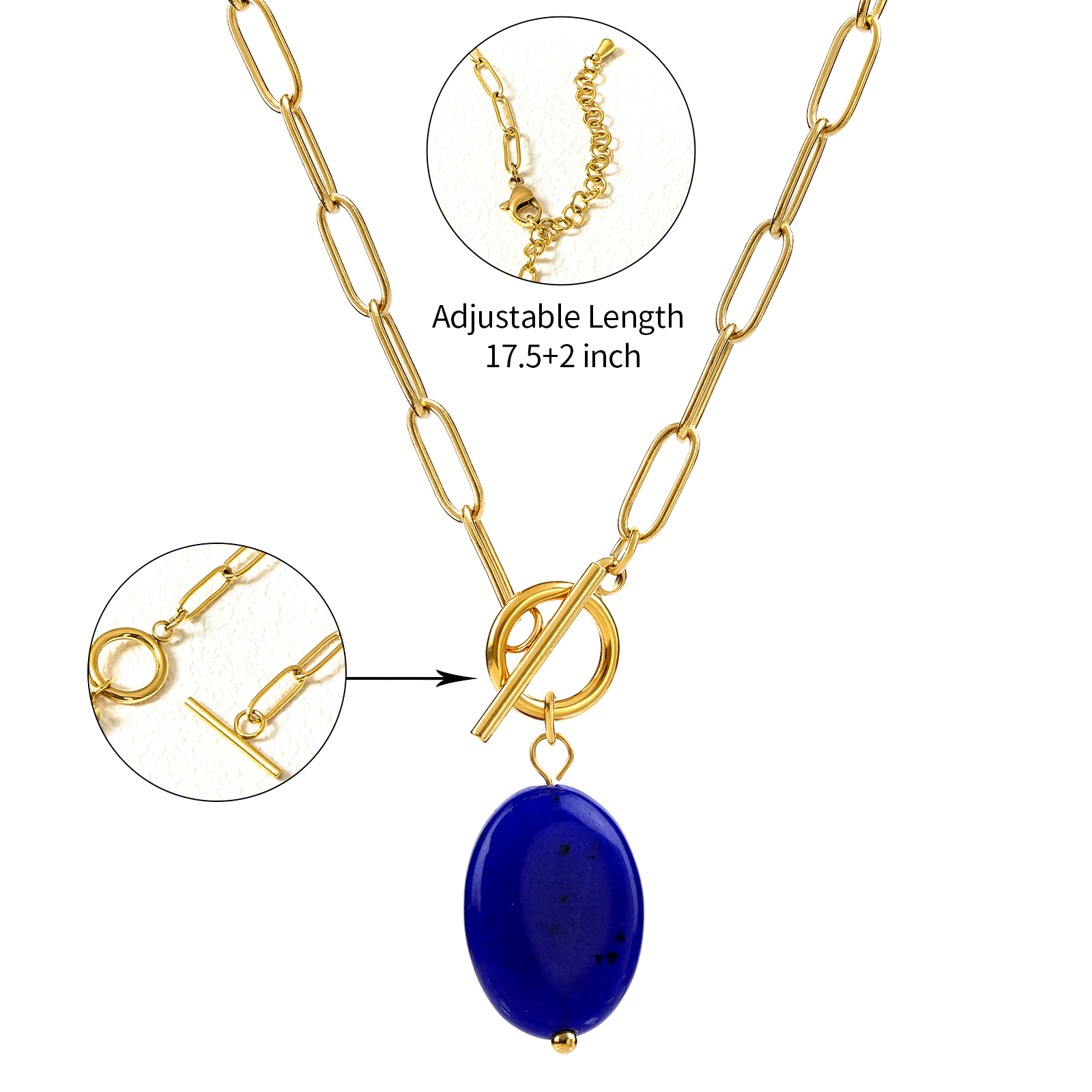 This stainless steel necklace with lapis lazuli stone is designed to meet market demand, making it a reliable option for brands seeking functional and stylish jewelry products.
