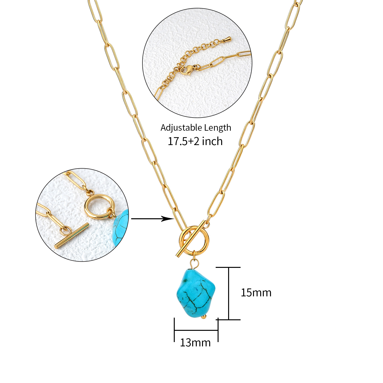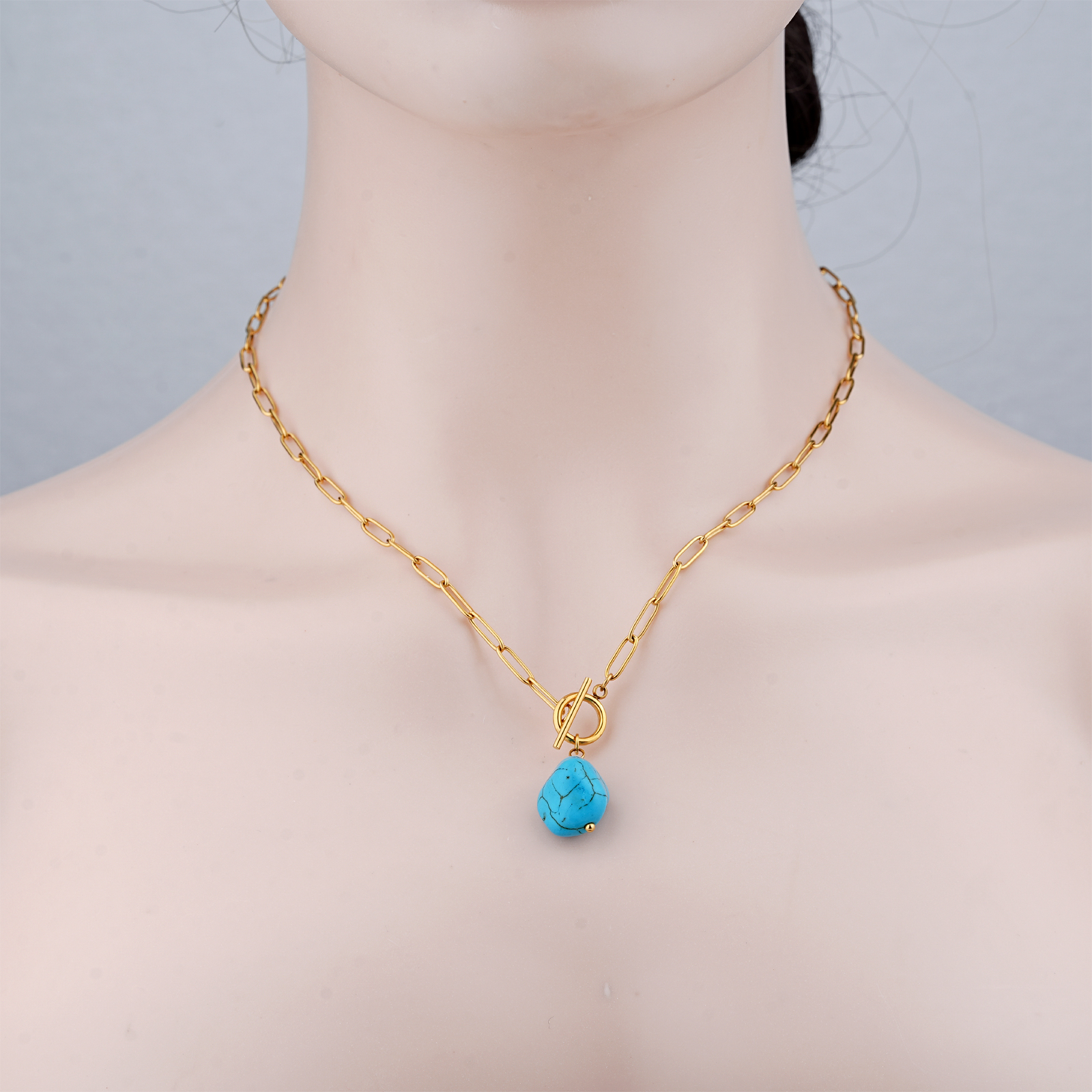 This stainless steel necklace with turquoise stone is an excellent choice for jewelry brands and distributors seeking reliable and stylish products.