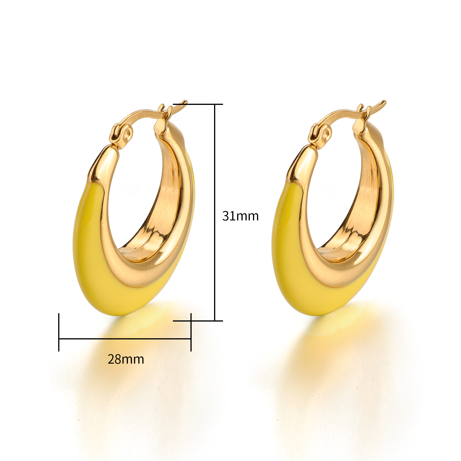 Featuring a bright yellow 108V shade, these earrings add a cheerful and stylish accent to any outfit, perfect for daily wear or special occasions.