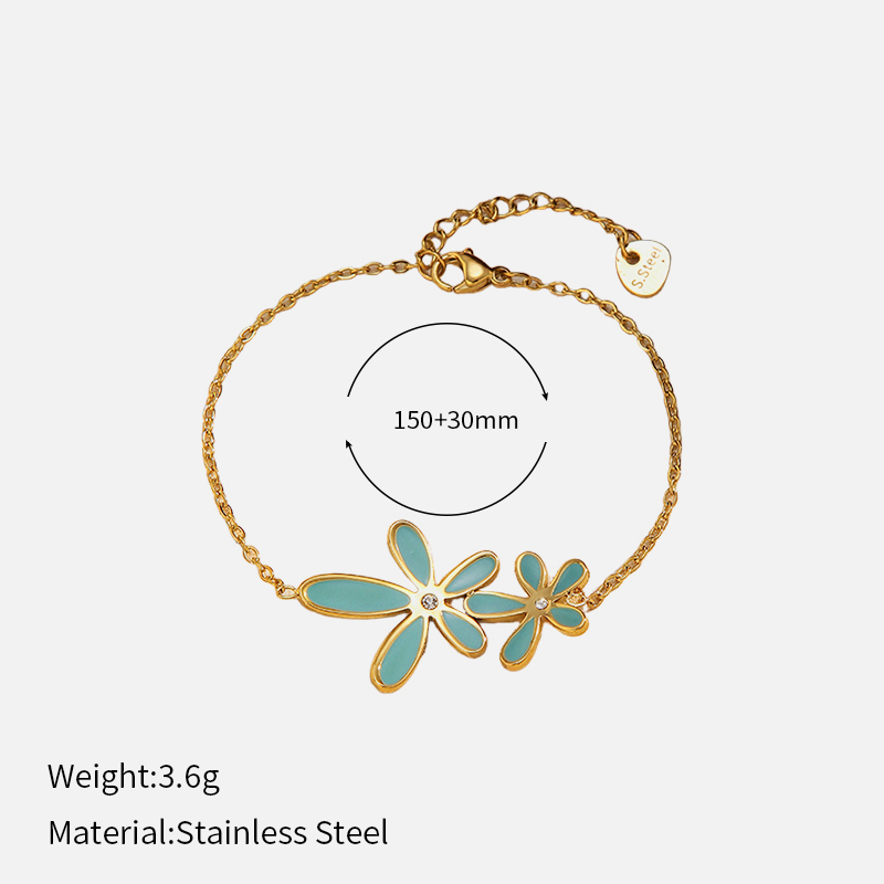 This gold stainless steel bracelet with flower design blends feminine elegance with a modern luxury style. The floral element adds charm, making it suitable for daily wear, business occasions, or special events.