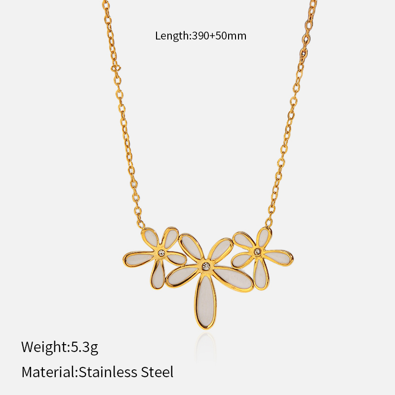 This stainless steel floral pendant necklace is crafted with high quality materials and a durable gold finish. It is resistant to tarnishing, making it suitable for long term daily wear while maintaining its shine.