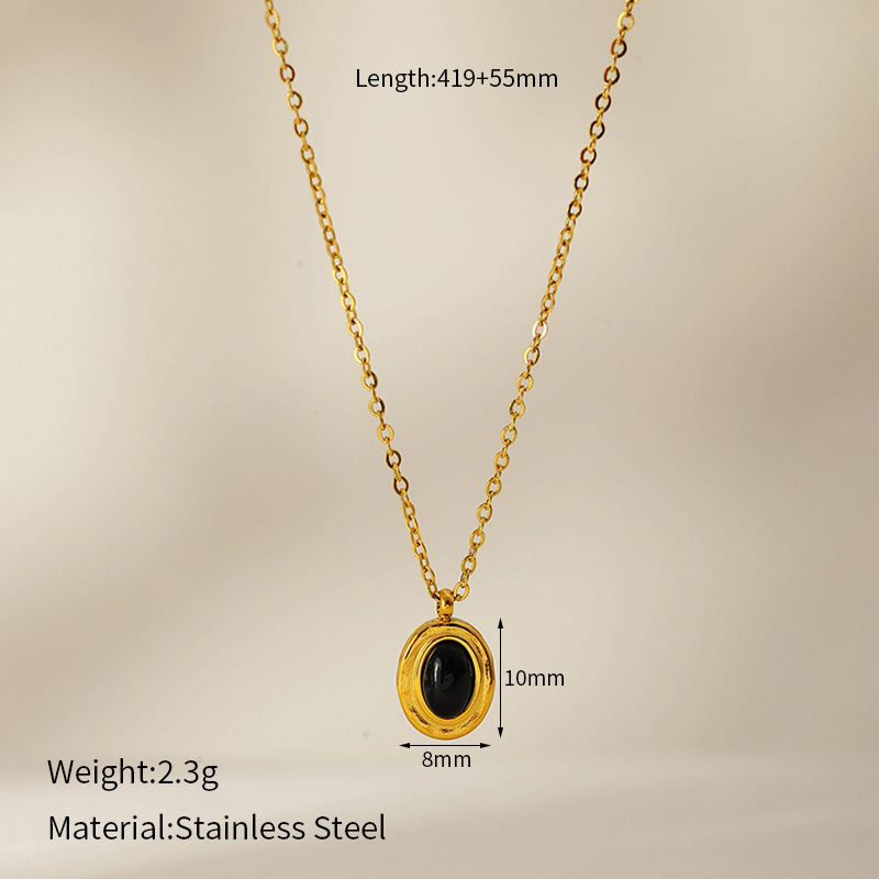 This minimalist gold stainless steel pendant necklace features an elegant oval shape, making it a timeless gold stainless steel necklace for women. It pairs easily with daily and formal outfits.