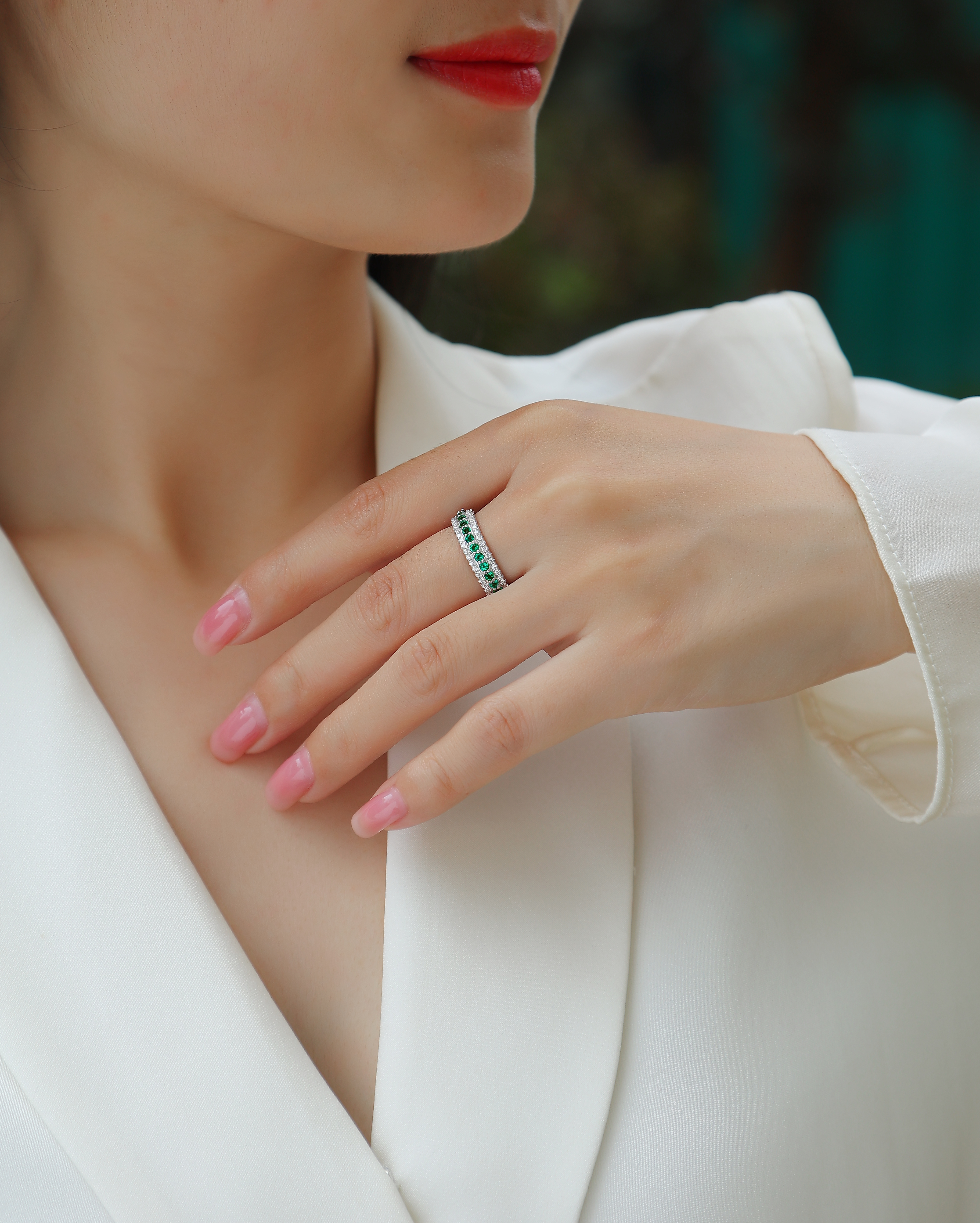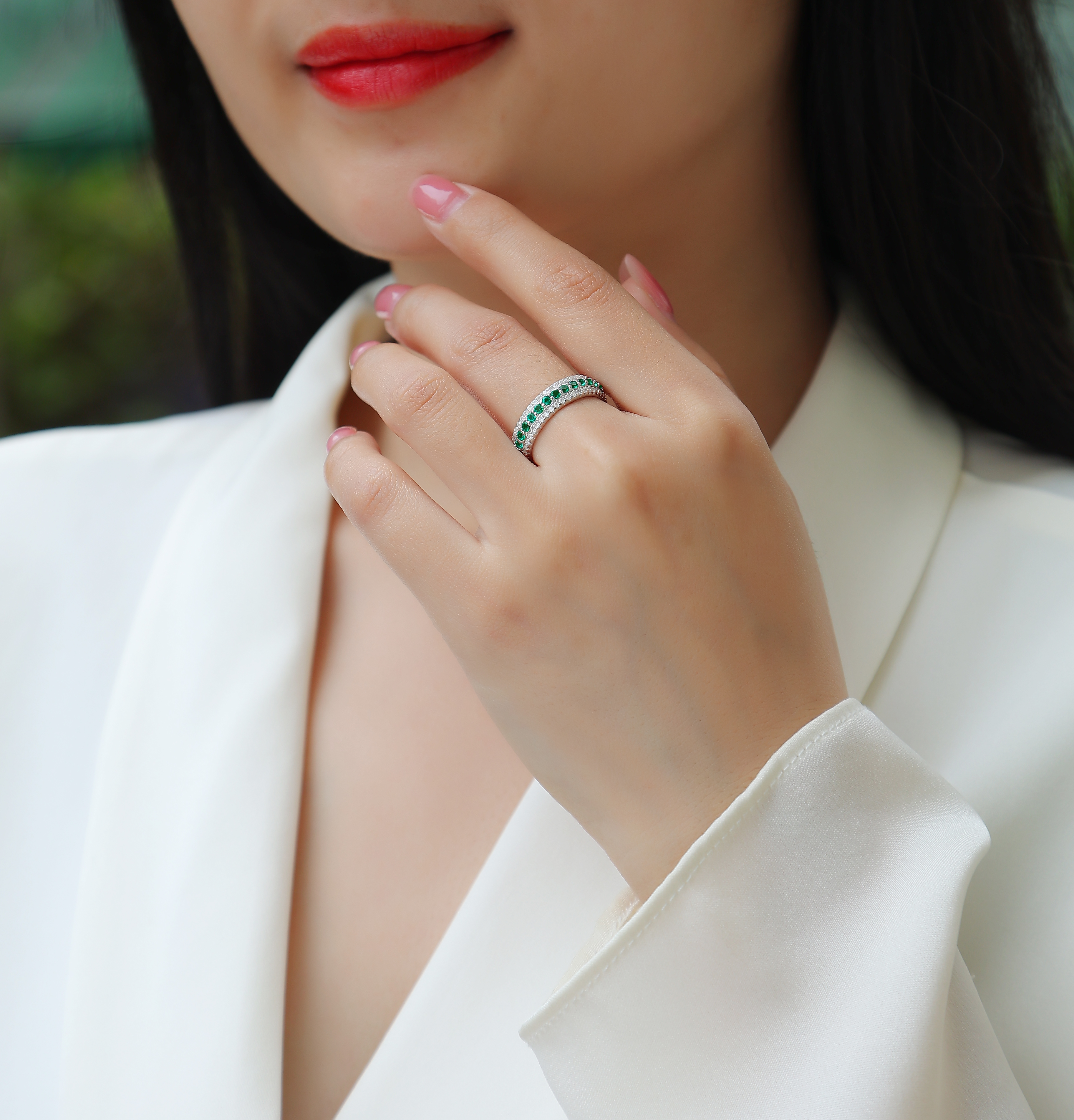 The green moissanite gemstone ring symbolizes luck, growth, and confidence. The heart inspired silhouette reflects positive energy, making this 925 silver ring ideal for meaningful daily wear and gift focused collections.
