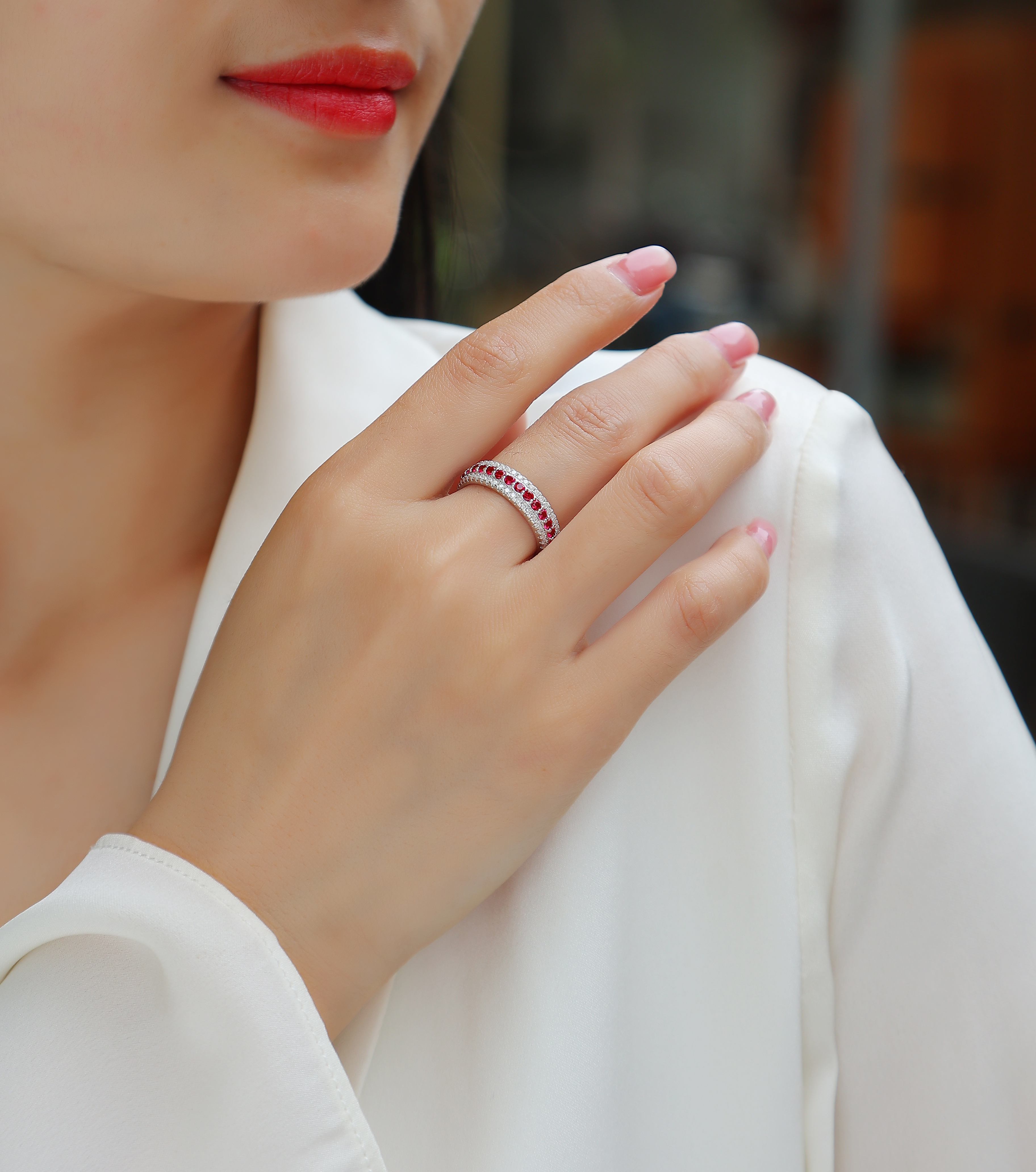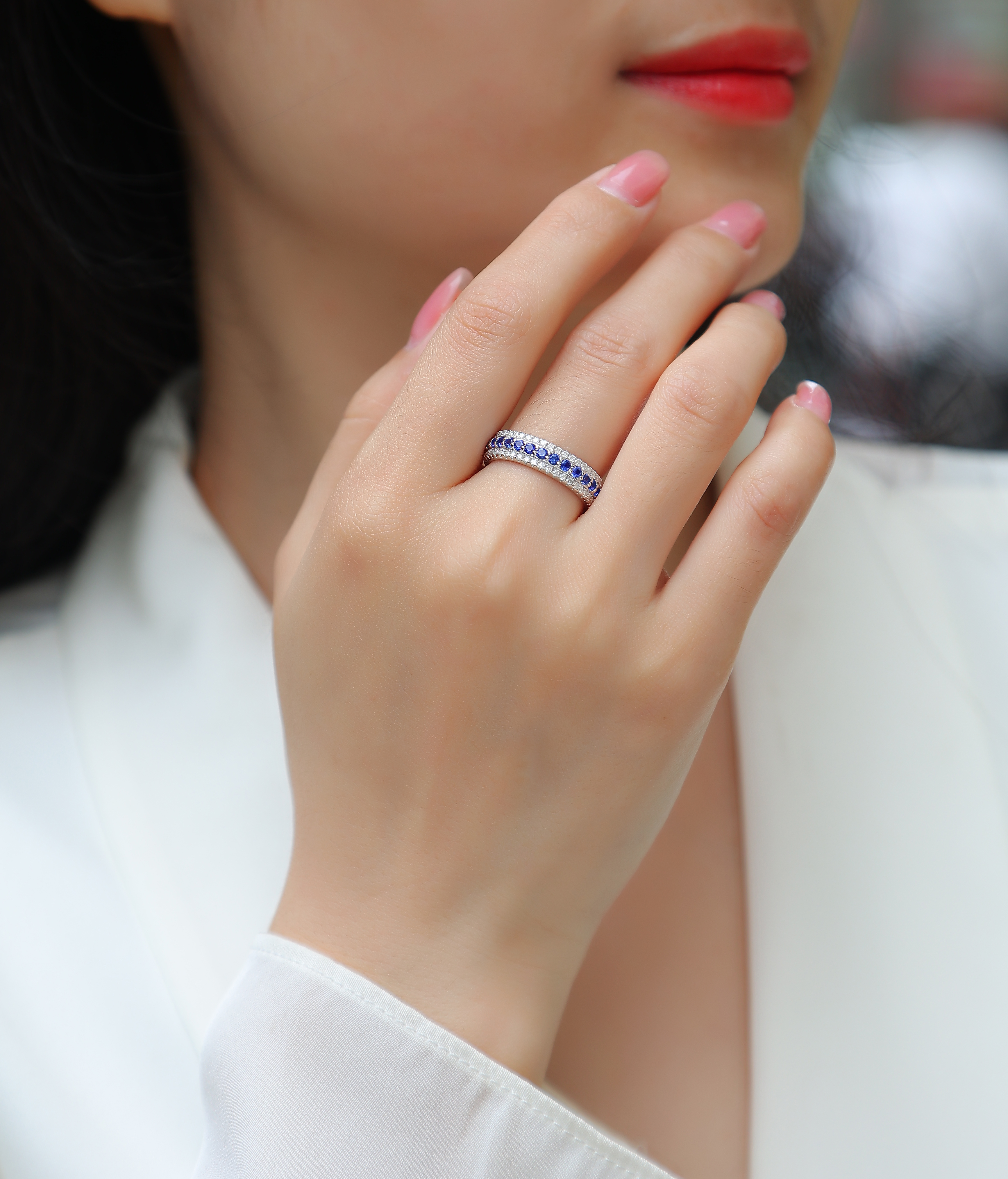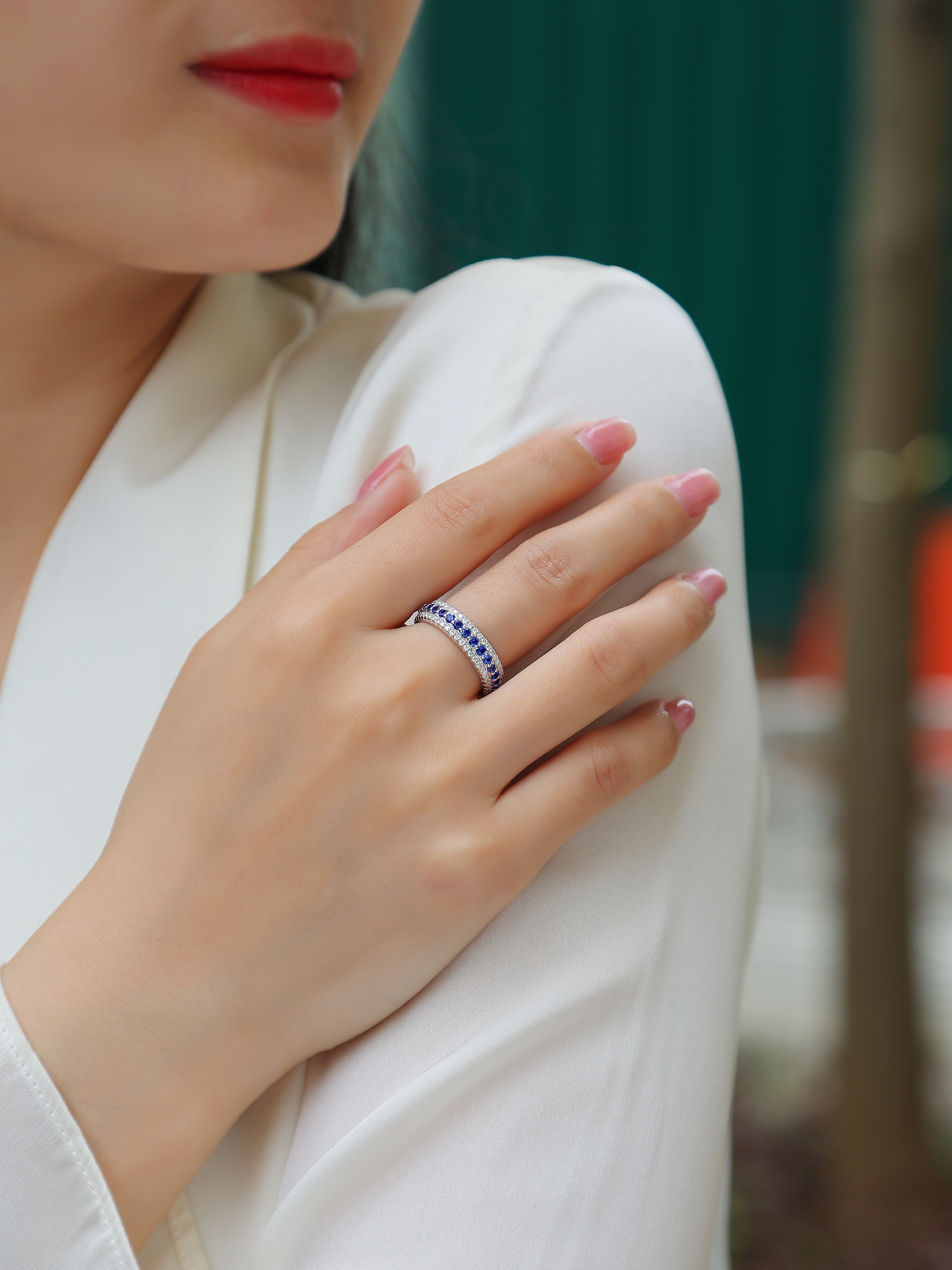 Polished moissanite stones are precisely set to create star like sparkle. This moissanite rings style captures refined shine with lasting durability, meeting international wholesale jewelry standards.
