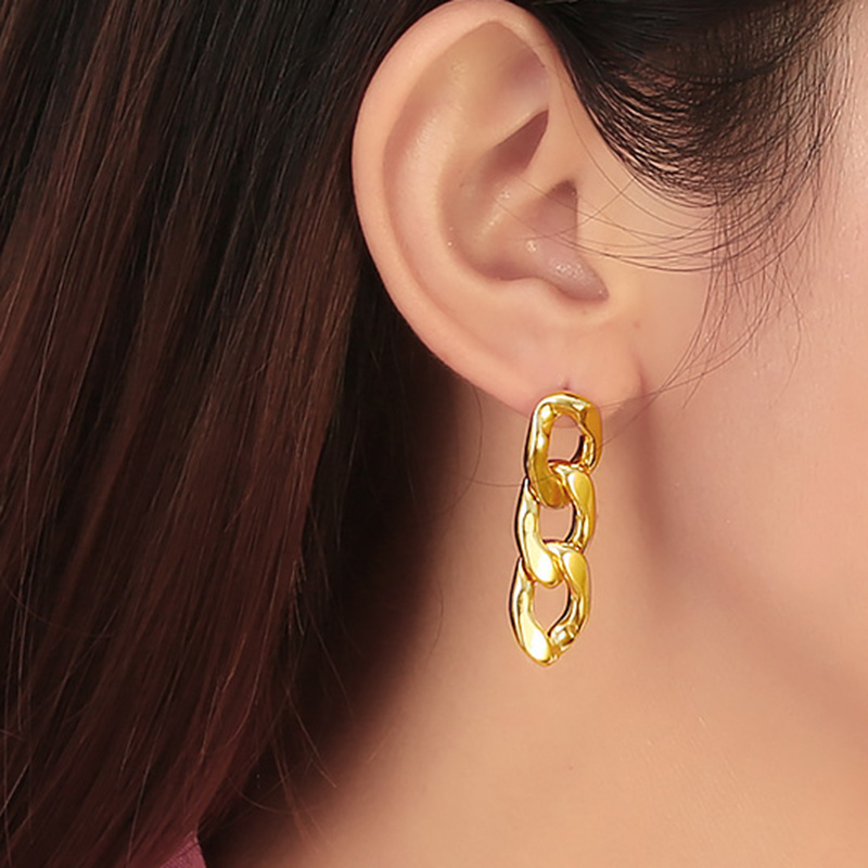 Wholesale Advantages of Non-oxidizing 18K Gold-plated Thick Chain Pendant Earrings