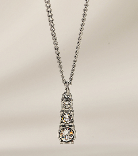 This stainless steel necklace features a vertical triple crystal pendant design, offering a clean and elegant look. The silver-tone finish enhances brilliance, making it ideal for daily wear and modern styling.