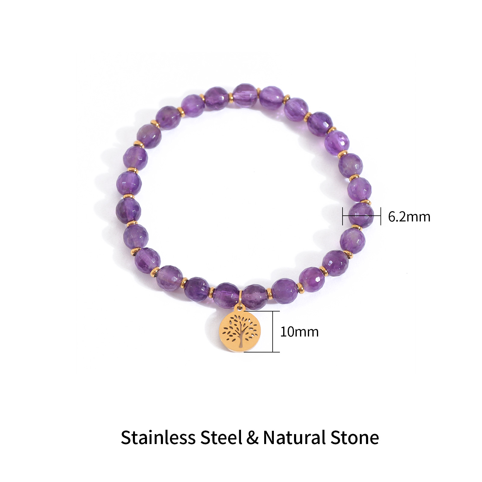 Featuring natural purple amethyst beads, this stainless steel amethyst bracelet delivers an elegant gemstone appearance combined with modern craftsmanship.