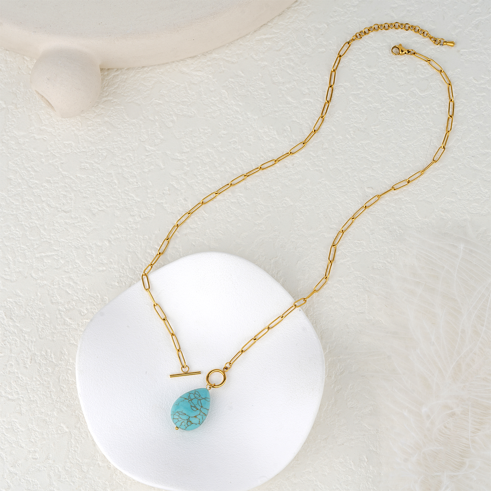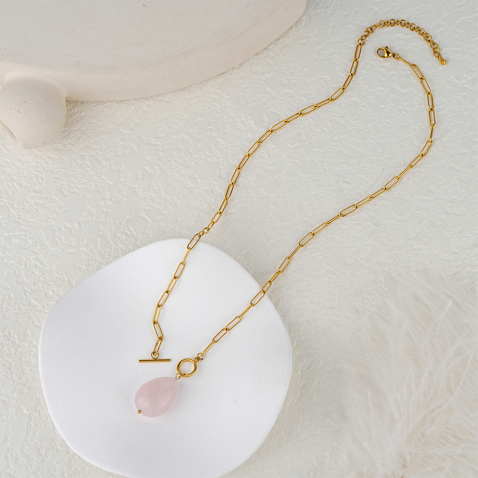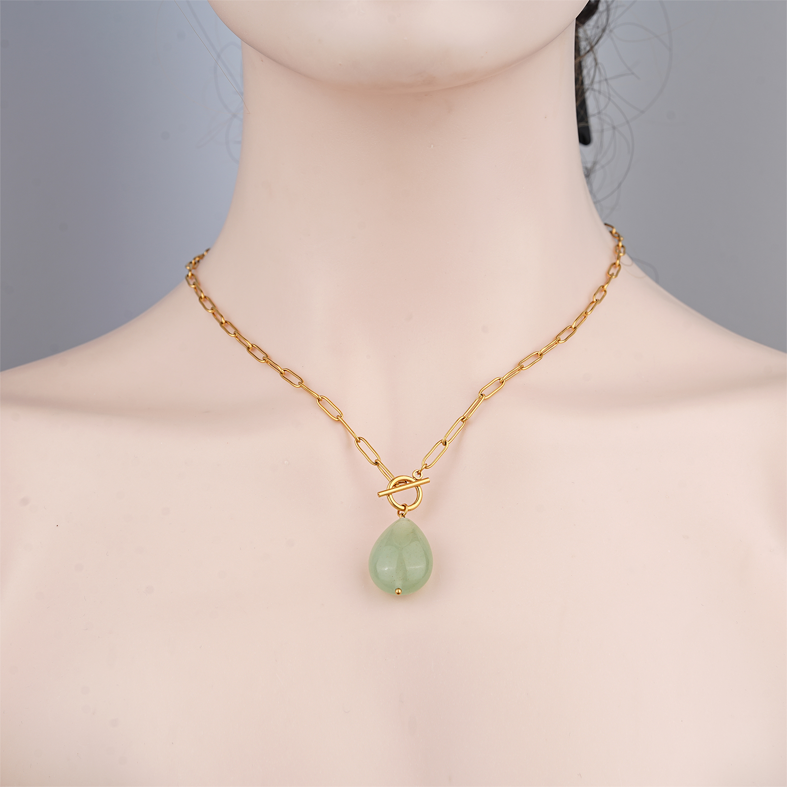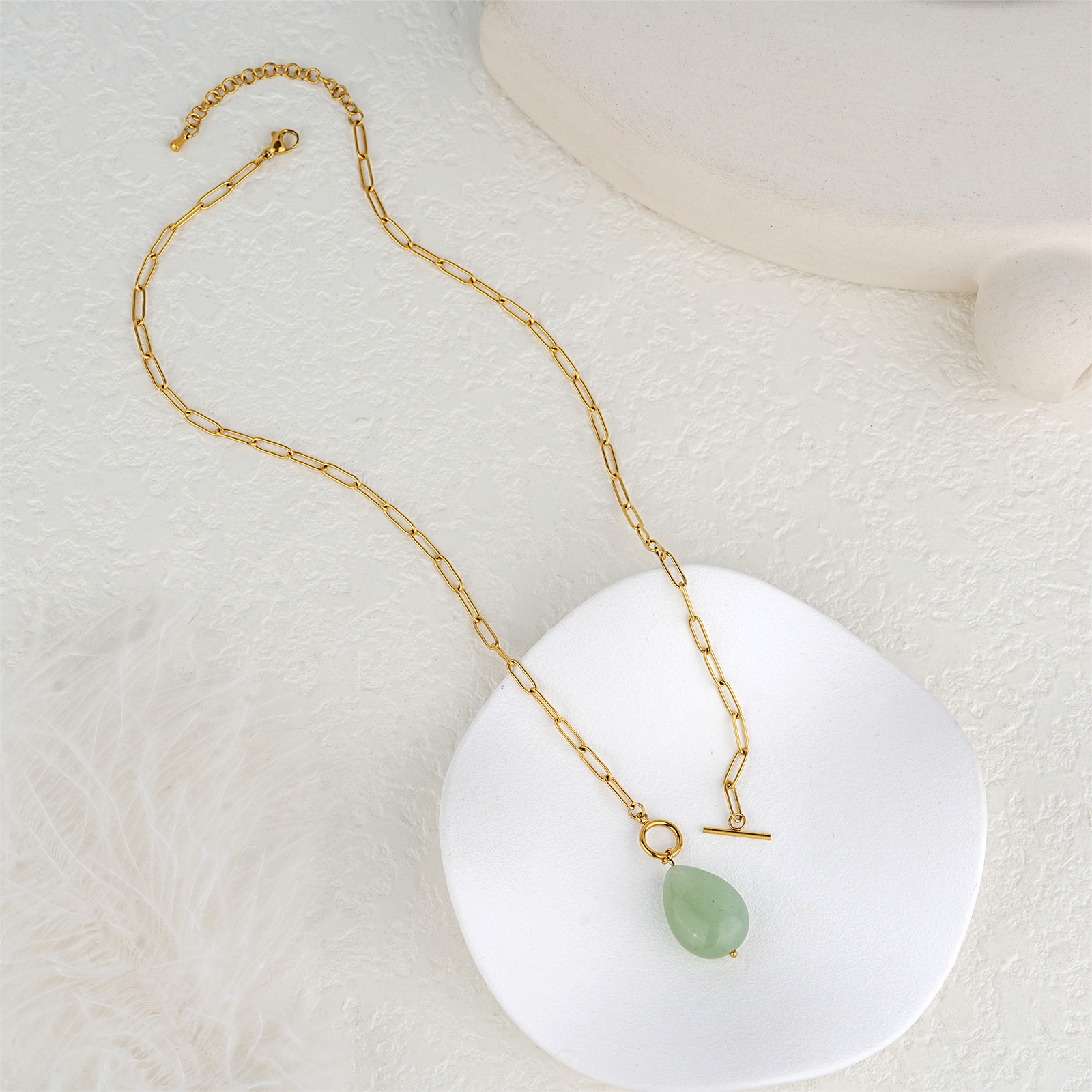 The green aventurine pendant brings a fresh and natural appearance. Its smooth texture and soft green tone make this necklace ideal for modern and minimalist jewelry collections.