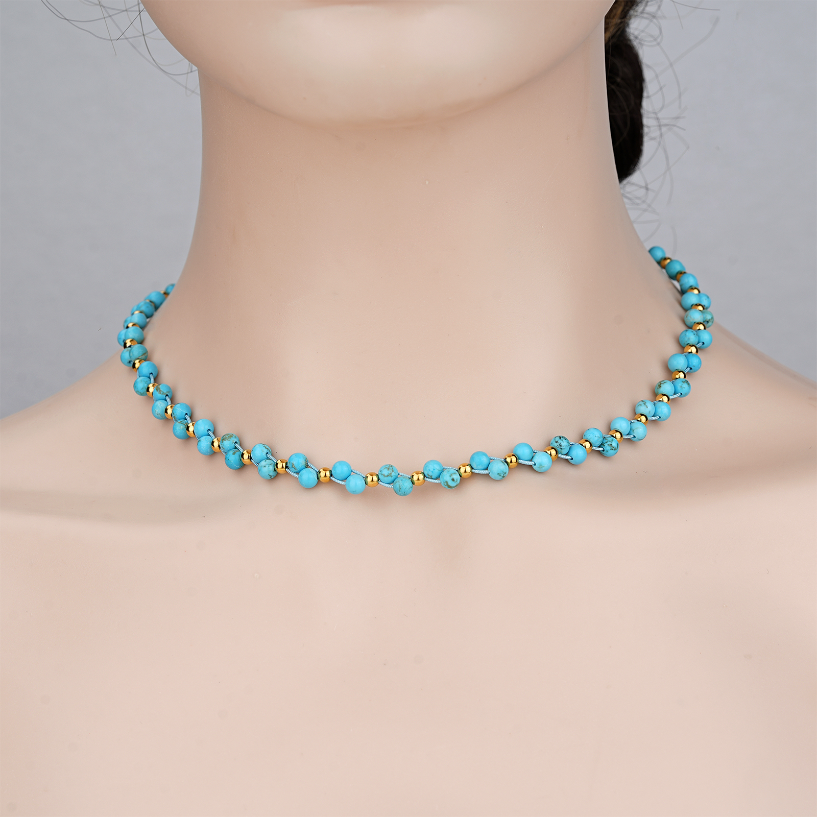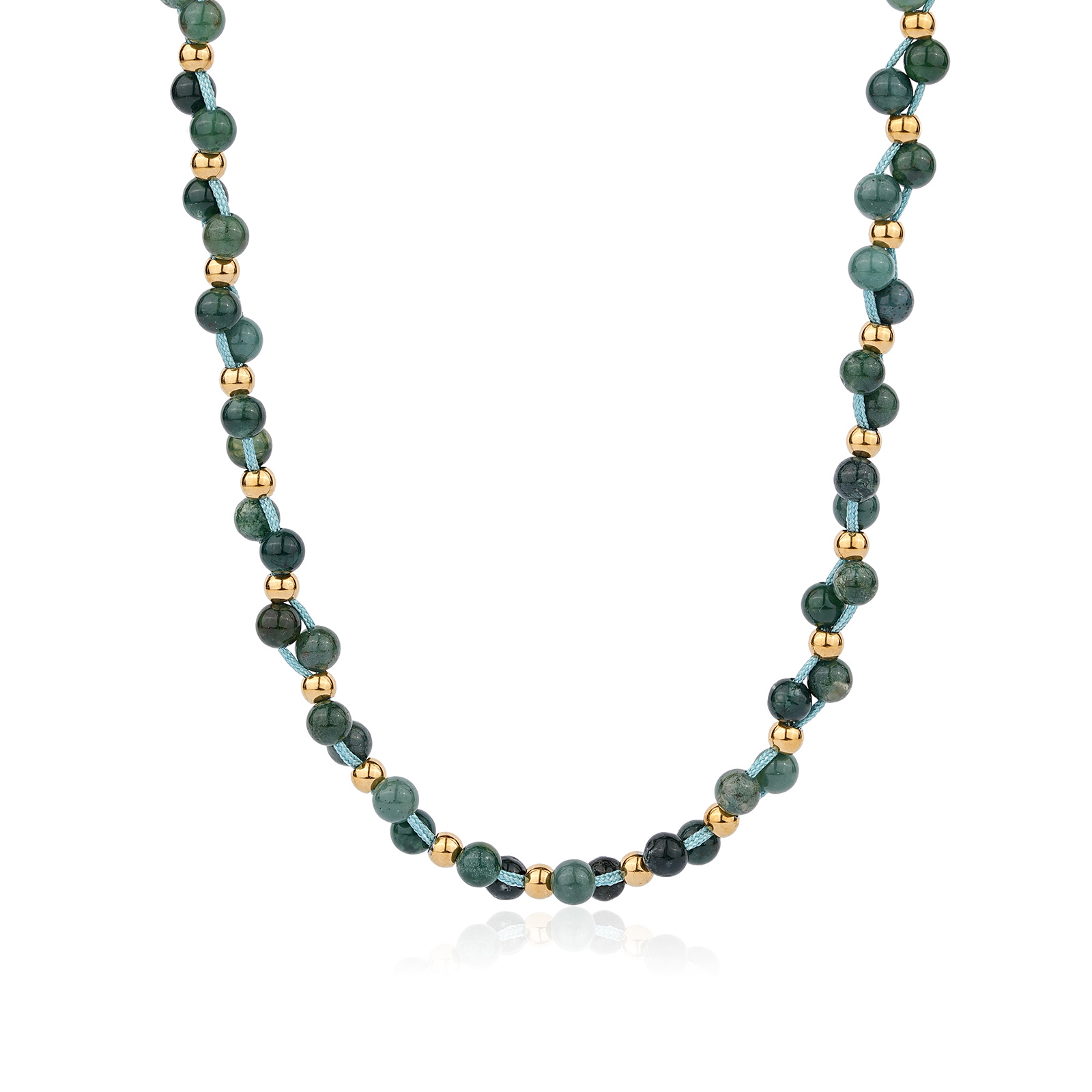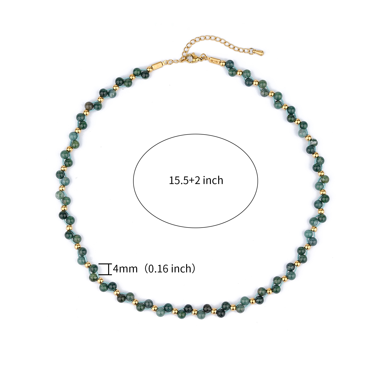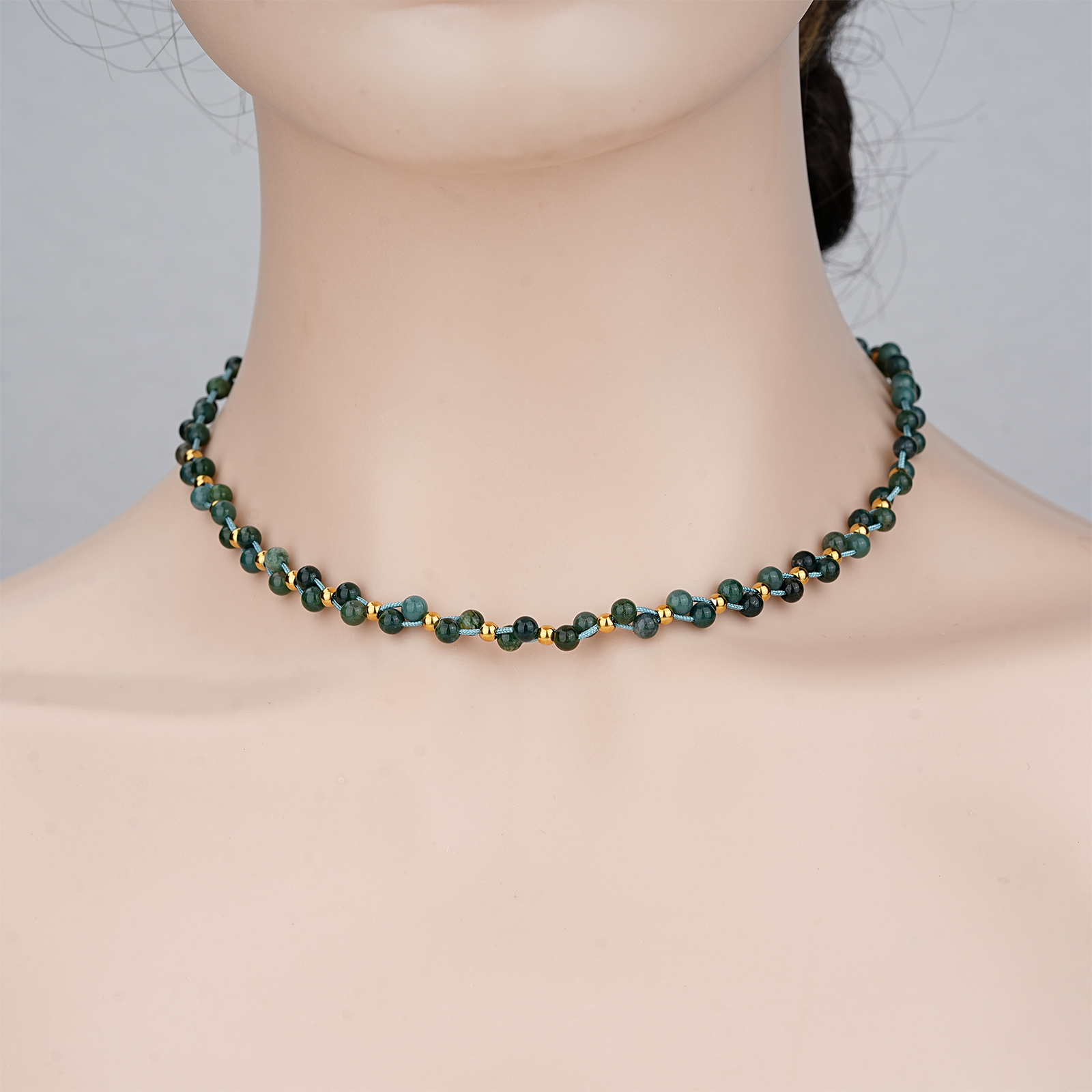 Designed with green moss beads, the necklace presents a fresh and natural appearance, making it suitable for modern fashion jewelry collections.