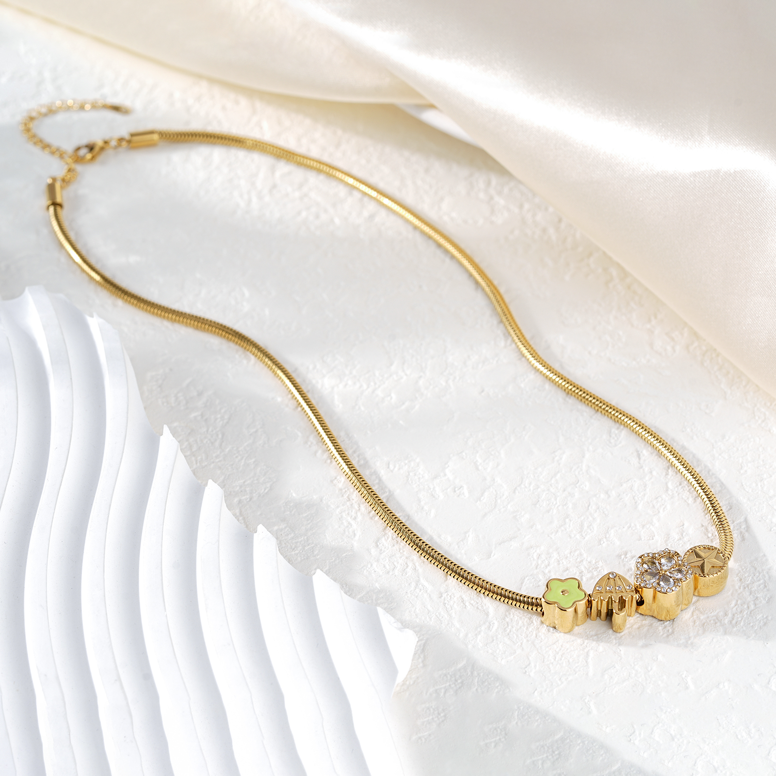 This stainless steel necklace is crafted from durable stainless steel, offering strong resistance to corrosion, stable color performance, and long-lasting wear quality.
