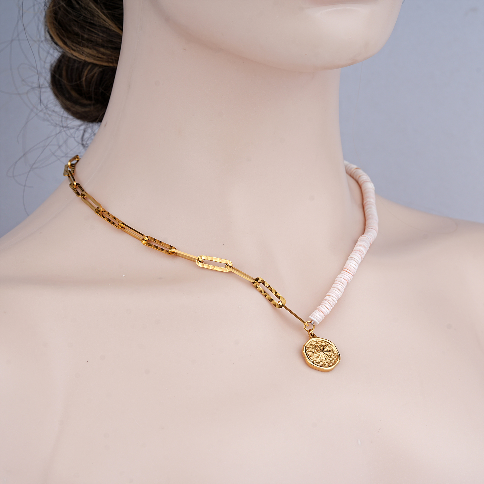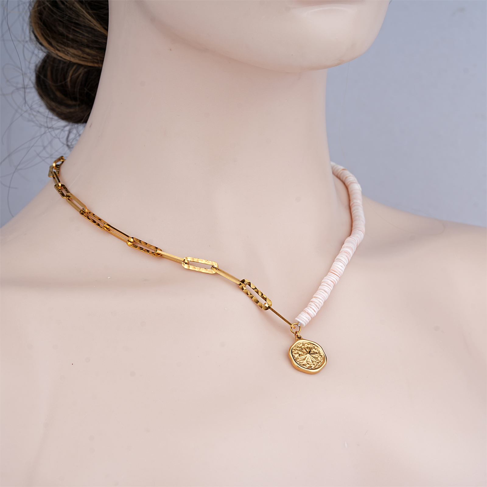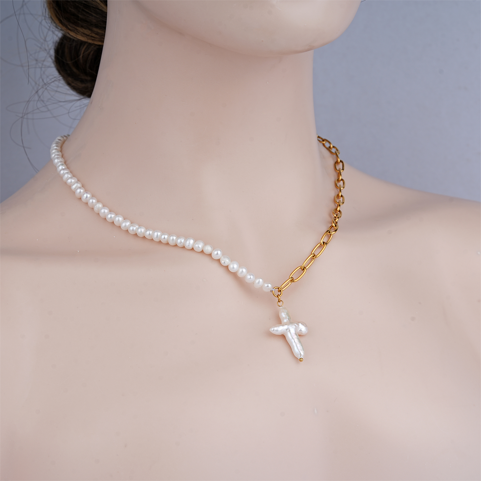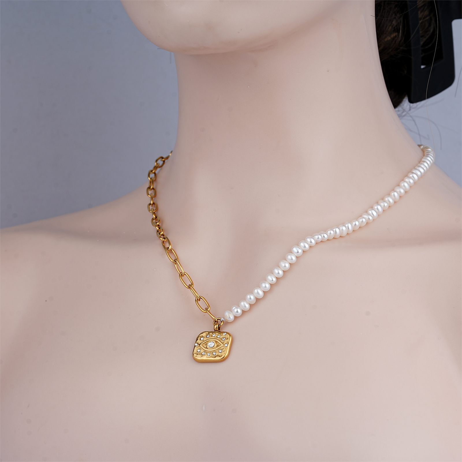 Designed with refined freshwater pearls and a delicate pendant, this stainless steel necklace balances elegance and modern fashion appeal.