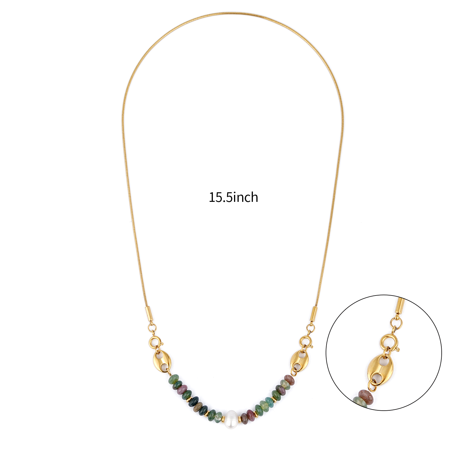 Stainless Steel Necklace with Indian Agate Beads Pearl