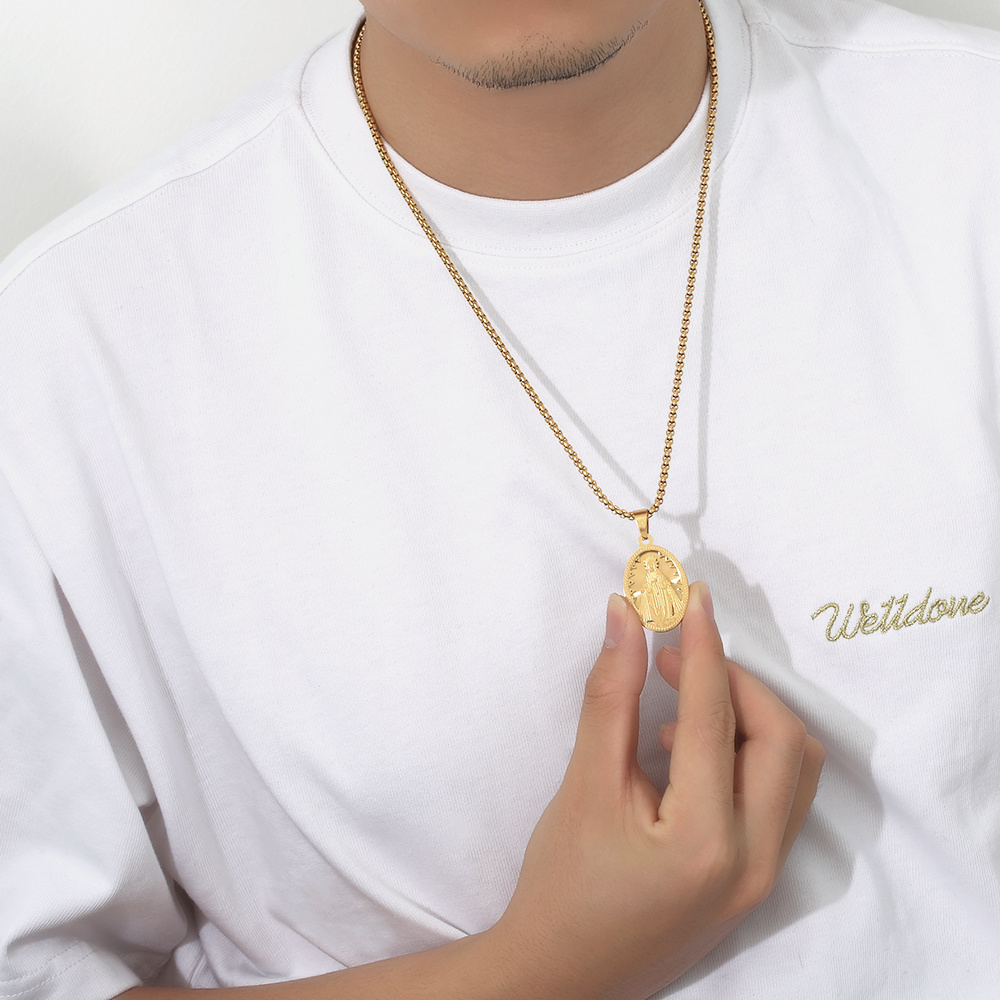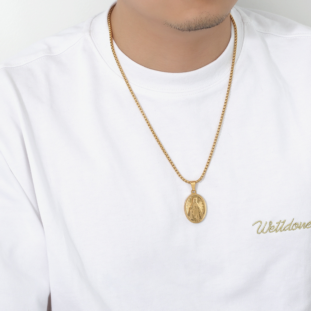 TikTok Hot Selling 18k Gold Virgin Mary Charm Pendant Men's Gold Jewelry Wholesale