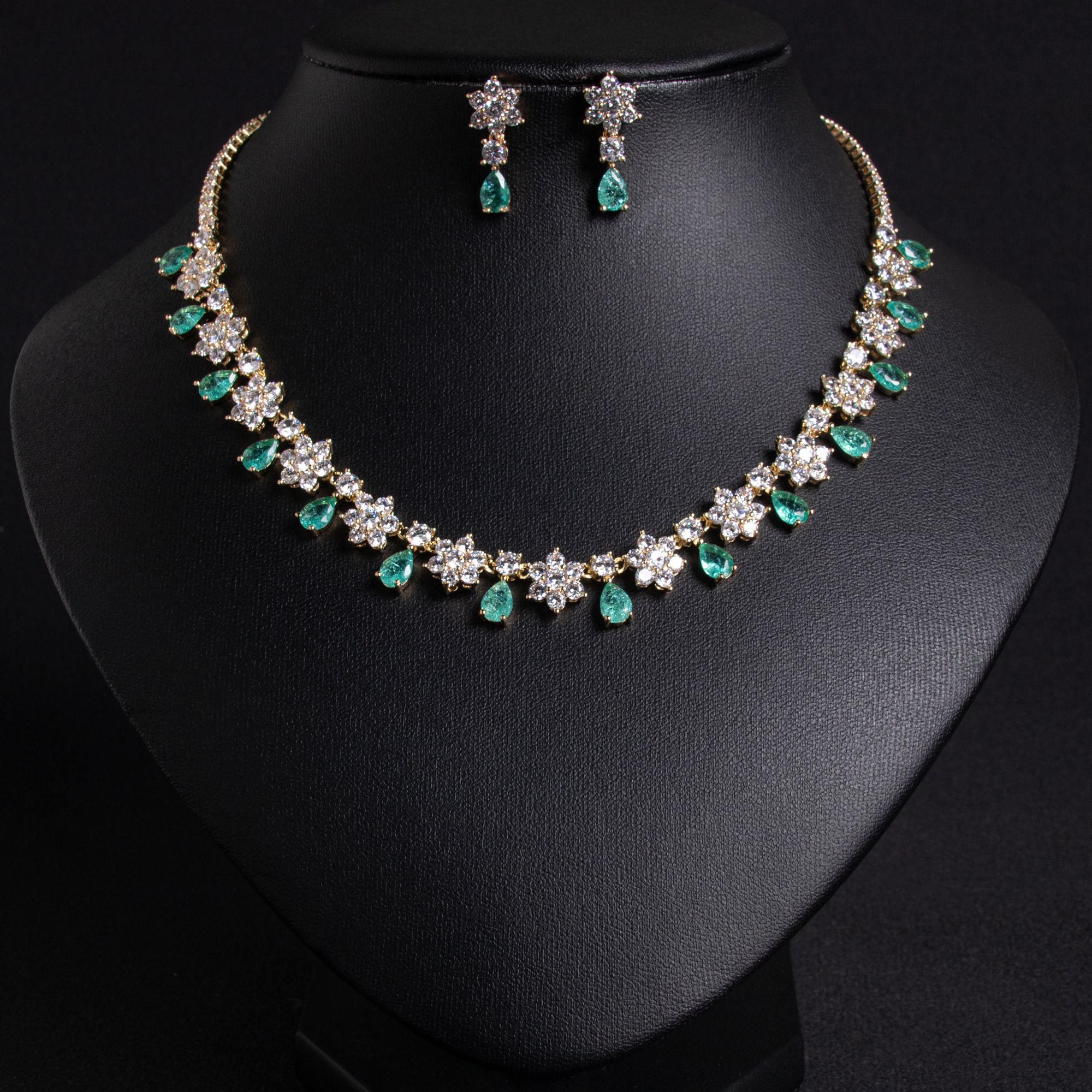 This bridal jewelry set features a Multi Color Star Design 18k Gold Plated Copper Teardrop Zircon Necklace and Earring Set for women’s formal evening events, combining brilliance and refined detail.