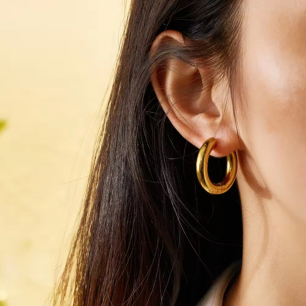 Custom 18k gold-plated hoop earrings for women - vintage luxury boutique stainless steel fashion jewelry