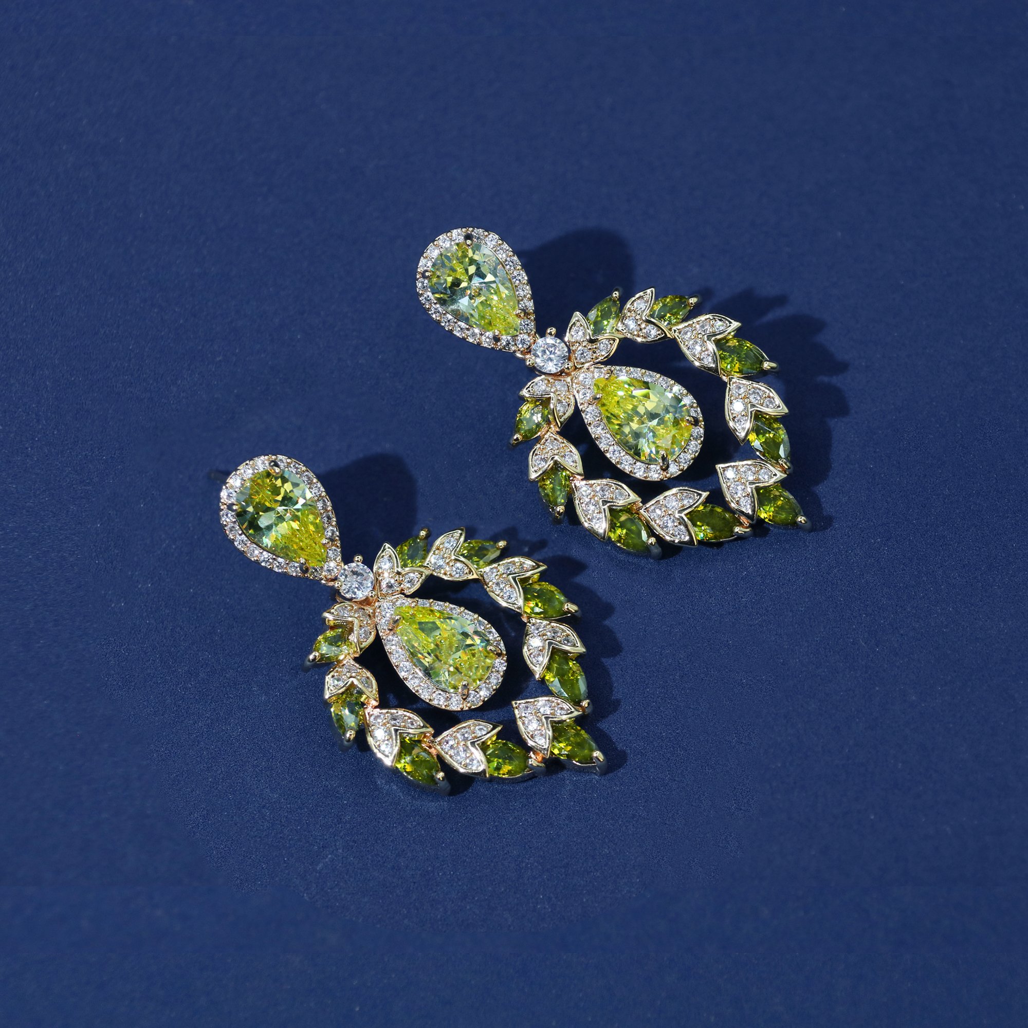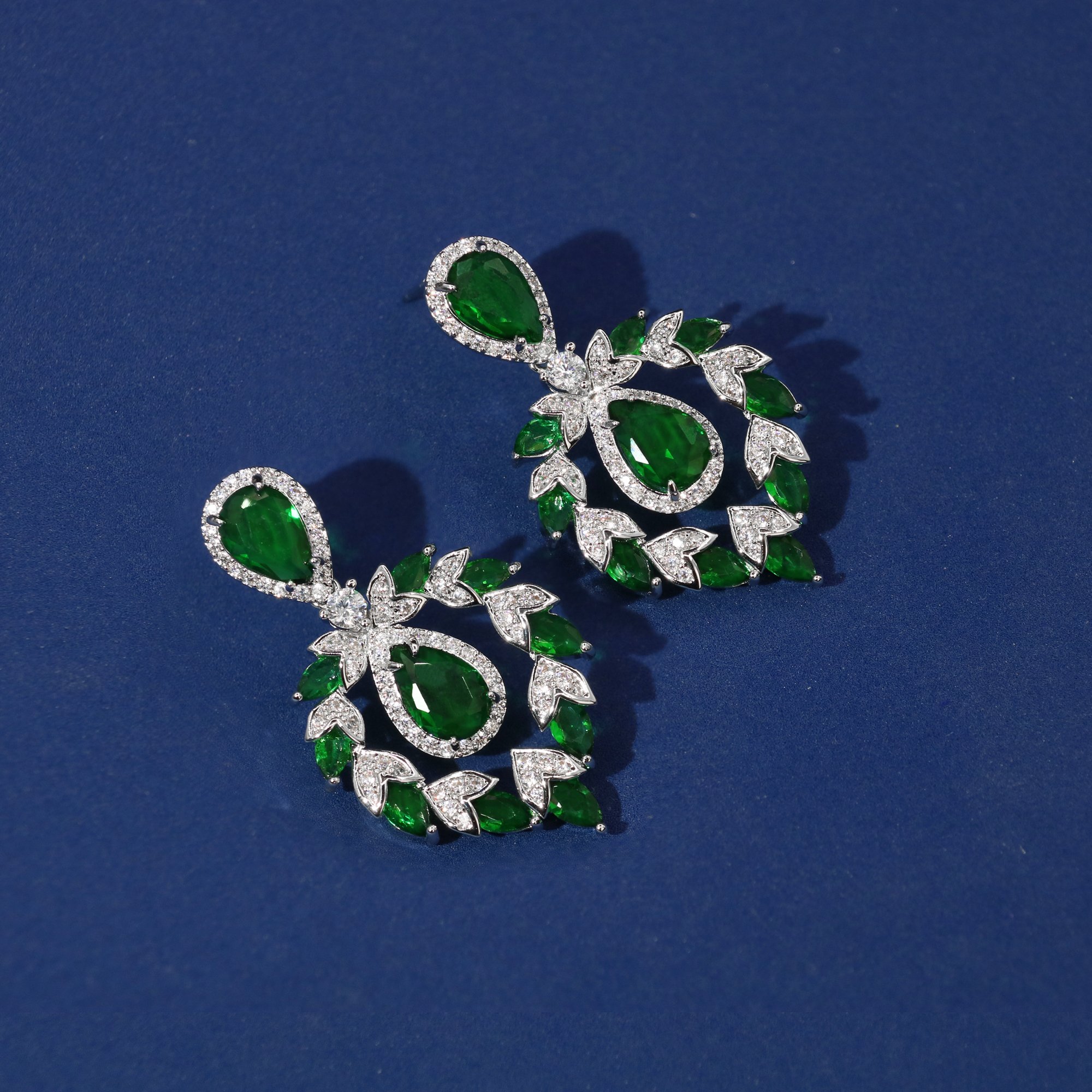 Estes brincos pendentes para mulheres exibem pedras em forma de lágrima de zircônia cúbica emolduradas por uma graciosa silhueta de guirlanda de folhas. O design equilibra elegância e usabilidade para roupas do dia a dia ou ocasiões especiais.