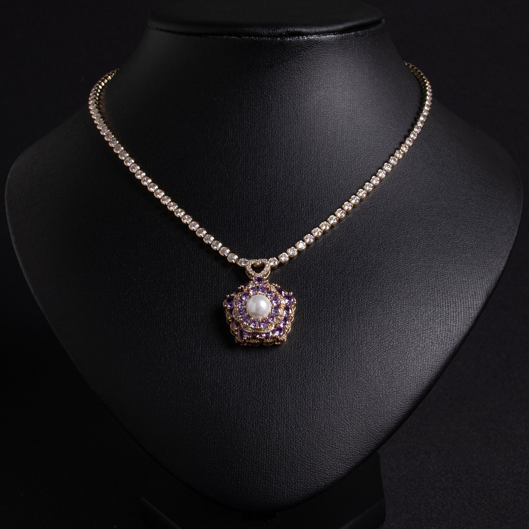 Это женское колье представляет собой многоцветную подвеску с 3D цветочным бутоном из циркона с искусственным жемчугом и медью с покрытием из 18-каратного золота, предназначенную для повседневной женской носки с изысканными деталями.